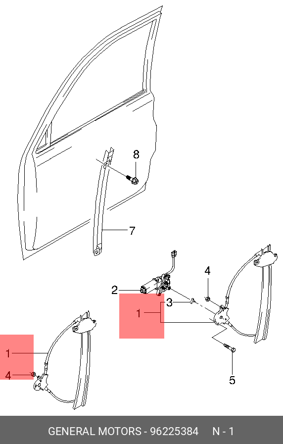 96225384 General Motors Стеклоподъемник передний правый под крест электрический 1.5i / 1.6i