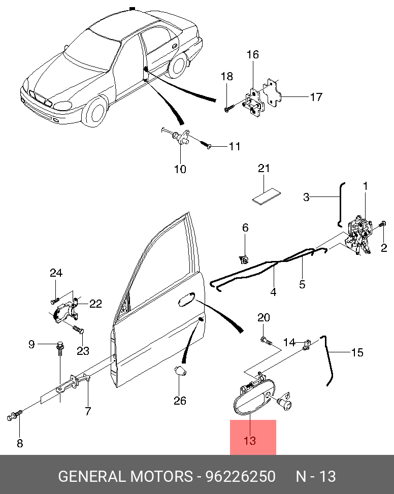 96226250 General Motors Ручка двери передней наружная правая 1.5i / 1.6i
