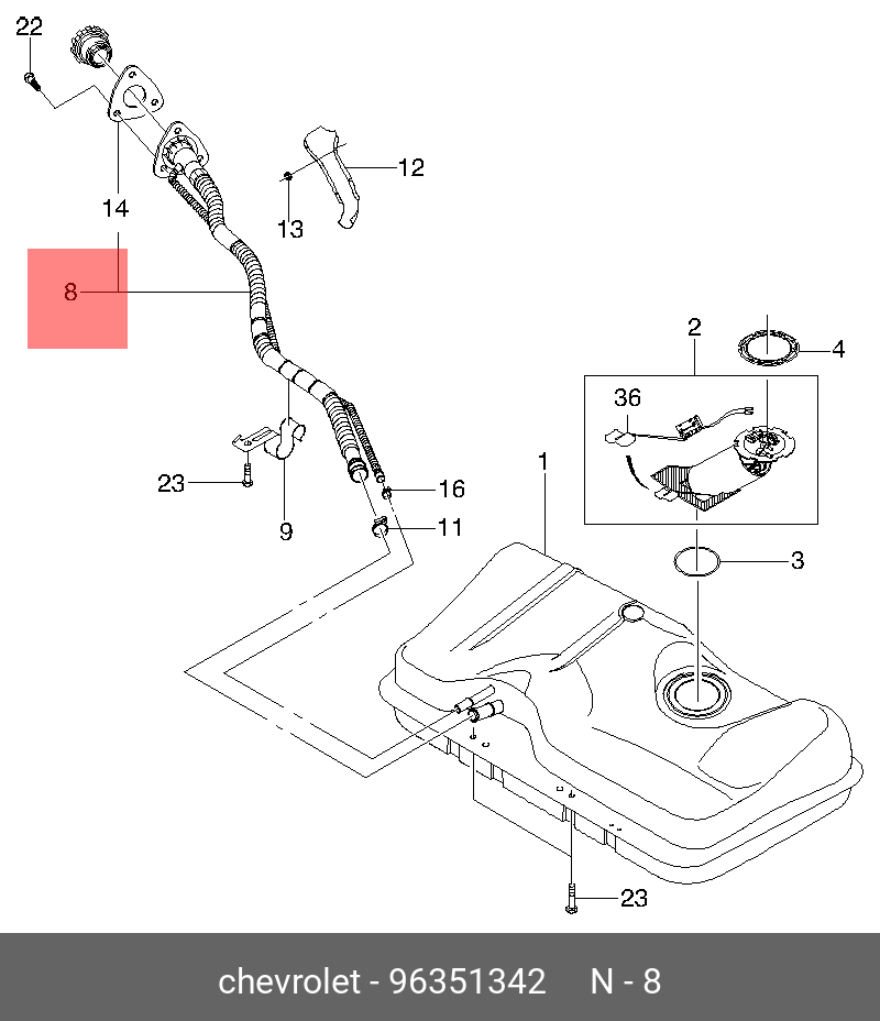 96351342 General Motors Топливозаливная горловина 1.5i / 1.6i